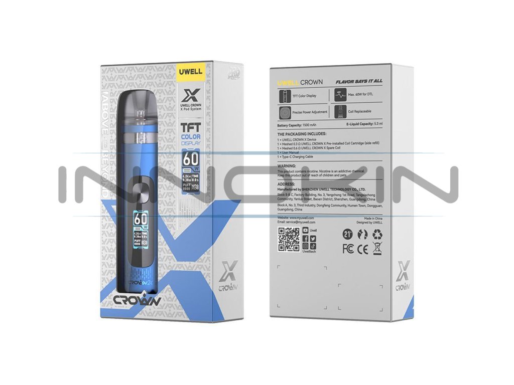 Uwell Crown X Pod Kit je špičkový pod mod, který přinese uživatelům MAXimální požitek ve spojení s MAXimálním a mocným výkonem pro potřeby DL a RDL vapingu. Užijte si větší produkci páry a mnohem intenzivnější chuť díky novým hlavám Crown X. Zažijte ten nejchutnější vaping s Boost režimem, který zaručuje konstantní výstupní výkon a konzistentní chuť od prvního až do posledního potahu.