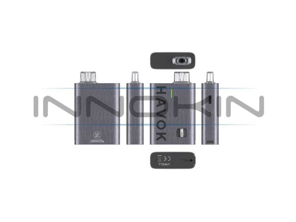Není určeno pro náplně obsahující nikotin! Elektronická cigareta Uwell Havok R se vyznačuje svým neotřelým designem a hlavně inovativní instalací cartridge, která se vkládá zespodu těla baterie = zamezení protečení liquidu. Vestavěný monočlánek o kapacitě 950mAh s automickým výkonem až 22W, LED indikátor stavu nabití a USB-C port pro rychlé nabití. Cartridge Havok R o objemu 3ml disponuje integrovanou žhavicí cívkou o odporu 0,6ohm.