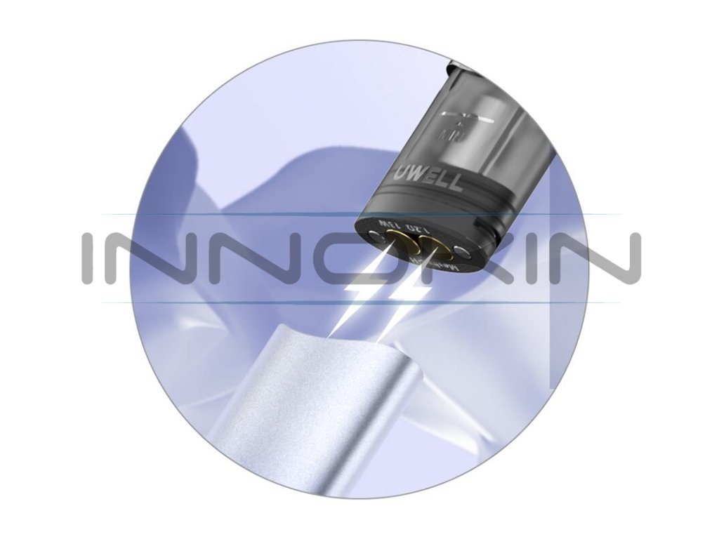 Ve vrchní části se nachází nová cartridge Uwell Kalmia. Cartridge disponuje objemem 1,6 ml a nabídne vynikající podání chuti díky integrovanému mesh tělísku FeCrAl UN2 Meshed-H s odporem 1,2 ohm. Dodá tak každému potahu věrné a prokreslené podání chuti, ale také optimální tuhost pro co nejlepší požitek z klasického šlukování.
