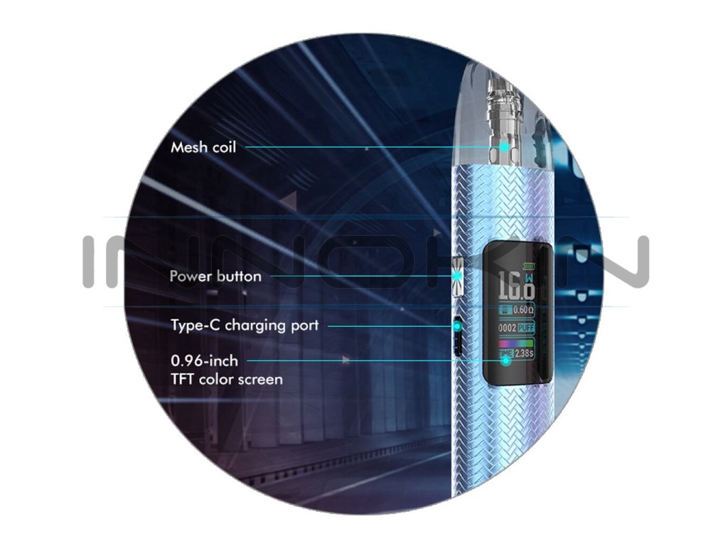 V jádru zařízení se nachází integrovaná baterie s obrovskou kapacitou 1000mAh pro dlouhé hodiny intenzivního vapování s minimem nabíjení. V případě nutnosti potom stačí pouze připojit USB-C kabel a baterii si můžete kdykoliv dobít. Lze dobíjet proudem až 1A.