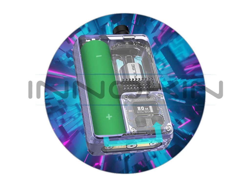 Tělo disponuje slotem pro vložení jedné baterie typu 18650. Díky pohonu na externí baterii tak budete moci v zařízení používat své oblíbené články, které si můžete pravidelně měnit a udržovat svou e-cigaretu neustále nabitou. Díky kladnému pólu svedenému přímo k čipsetu dodá zařízení také skvělou odezvu při žhavení pro ještě lepší výsledky při vapování.