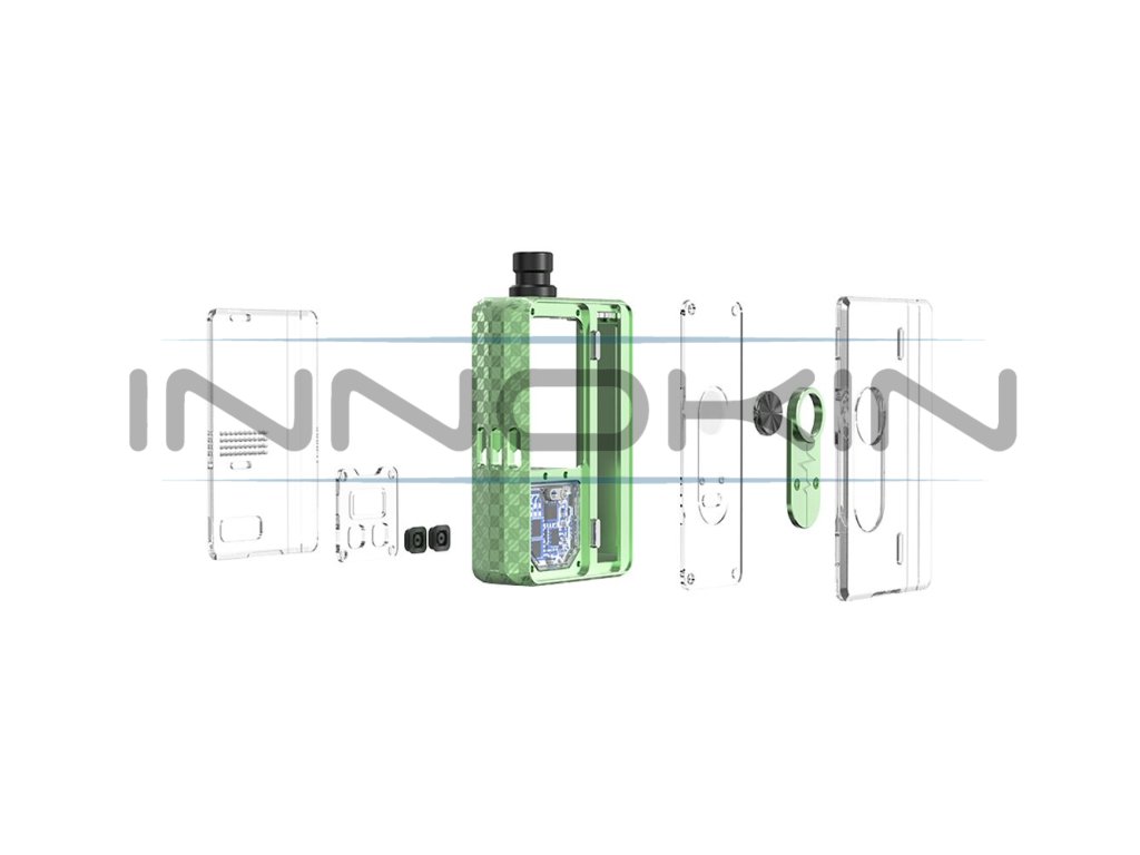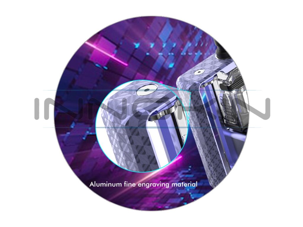 Kvalitní kovová konstrukce z hliníkové slitiny se speciální povrchovou úpravou dodá celému zařízení nejen luxusní vzhled, ale také skvělou odolnost. Materiál je navíc velmi lehký, celková hmotnost e-cigarety se proto zastavila na krásných 122 g. Díky praktickým rozměrům 77.3 x 51 x 23.4 mm se navíc také pohodlně přenáší a příjemně se drží v dlani.
