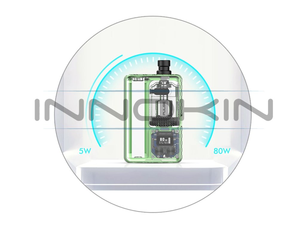 Druhá generace pokročilého pod modu Pulse AIO od výrobce Vandy Vape se představuje v přepracovaných barevných variacích s maximálním důrazem na variabilitu a široké možnosti vlastního nastavení. Do kompaktní konstrukce zařízení z hliníkové slitiny můžete vložit jednu baterii typu 18650. Díky speciální RBA cartridgi Pulse AIO V2 s objemem 6ml si můžete přizpůsobit vaping svým přestavám instalací vlastní spirály a vaty. Se širokými možnostmi výměny interních vzduchových vložek si model dokáže poradit se všemi typy vapingu, to vše navíc v rozsahu výkonu 5 - 80W. Profesionální vaping se vším, co k tomu patří, to je Pulse AIO V2.
