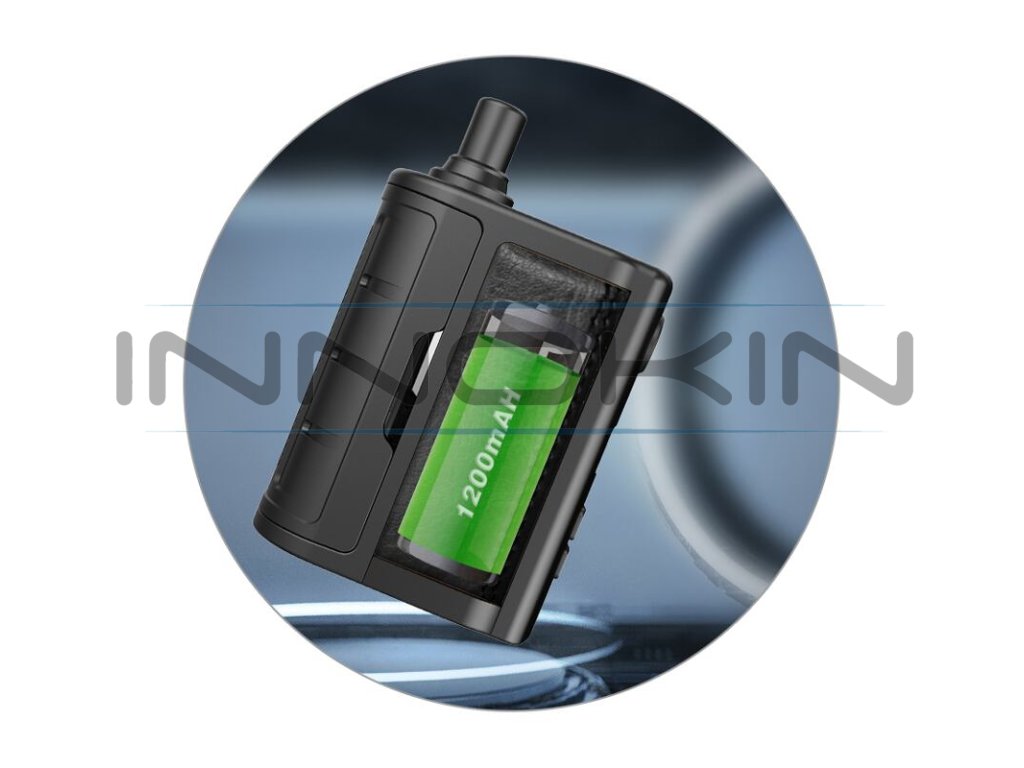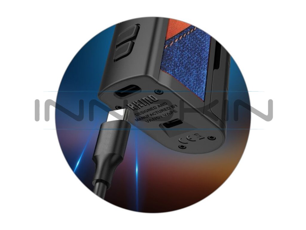 Uvnitř kompaktního těla modelu Rhino Pod na vás čeká baterie s obrovskou kapacitou 1200 mAh, která se postará o hladký mnohahodinový provoz bez potřeby dalšího napájení. Pokud však na samotné dobíjení přeci jen dojde, jednoduše připojíte USB-C kabel z balení a baterii si kdykoliv pohodlně dobijete. Slot pro připojení kabelu se nachází ve spodní části e-cigarety.