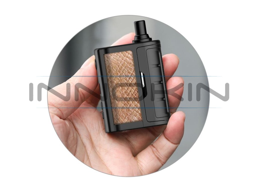 Vandy Vape Rhino Pod Kit je malá a kompaktní e-cigareta, kterou velice snadno schováte do kapsy a budete si ji moci pohodlně vzít kamkoliv s sebou. Její rozměry činí krásných 47,6 x 75,4 x 25 mm. Celé tělo se navíc příjemně drží v ruce také během potahu. Hmotnost e-cigarety činí pouhých 77 g, během potahu ji proto téměř ani neucítite v dlani. K dostání je hned v šesti barvách se stylovým koženým panelem v boční části.