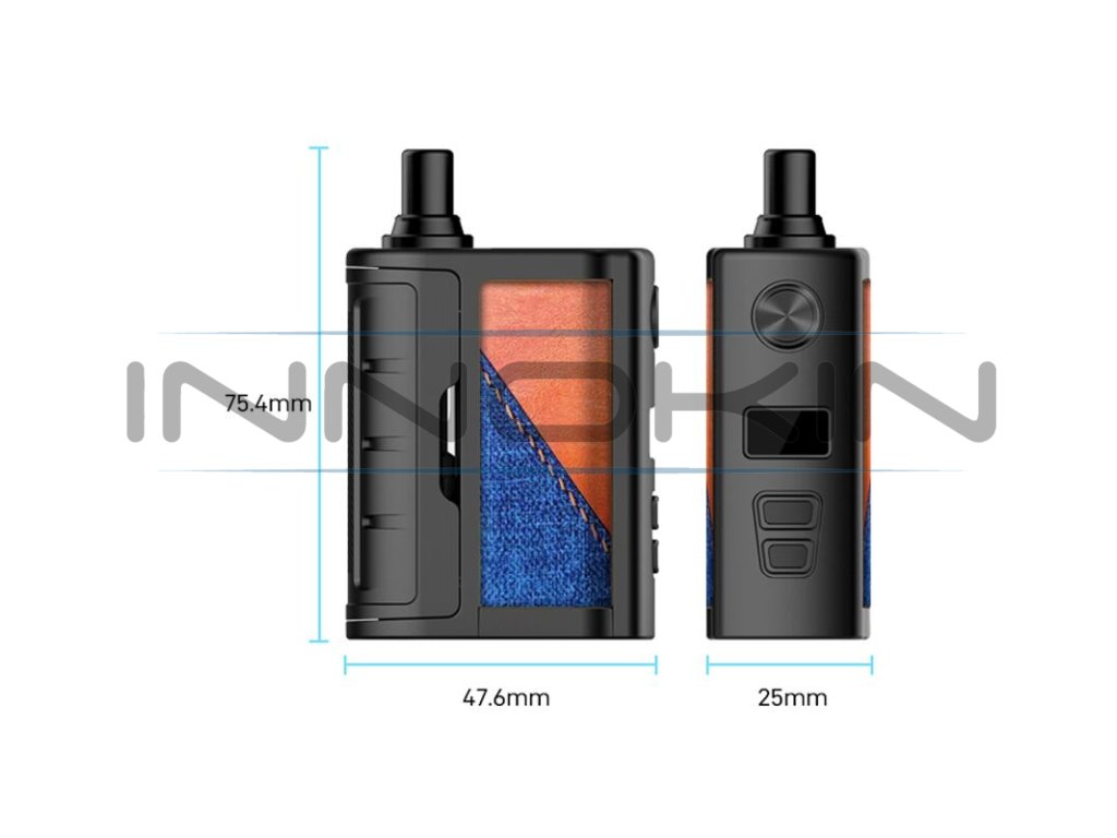 Vandy Vape Rhino Pod Kit je malá a kompaktní e-cigareta, kterou velice snadno schováte do kapsy a budete si ji moci pohodlně vzít kamkoliv s sebou. Její rozměry činí krásných 47,6 x 75,4 x 25 mm. Celé tělo se navíc příjemně drží v ruce také během potahu. Hmotnost e-cigarety činí pouhých 77 g, během potahu ji proto téměř ani neucítite v dlani. K dostání je hned v šesti barvách se stylovým koženým panelem v boční části.