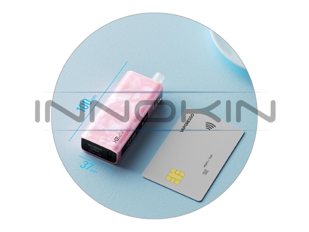 Kompaktní rozměry a strhující výsledky při vapování. Vaporesso APEX je ergonomicky vyladěná e-cigareta s kompaktními rozměry konstrukce 99.7 x 37 x 18.7 mm. Snadno ji proto schováte do kapsy nebo malého cestovního zavazadla a můžete ji mít neustále při ruce a sáhnout po ní kdykoliv, kdy budete potřebovat. Její tvar navíc zajistí pohodlné držení v dlani během vapování.
