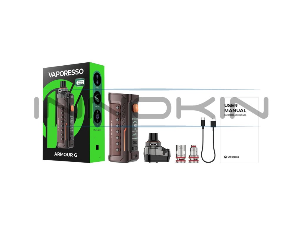V jádru verze Vaporesso Armour G se nachází integrovaná baterie s technologií Mega Batt pro maximalizaci potenciálu e-cigarety a pro dlouhou výdrž. Kapacita baterie činí krásných 3000mAh. Pohodově tak zvládne také intenzivnější vapování a samozřejmě vyšší výstupní výkony. Baterii si můžete kdykoliv opětovně dobít prostřednictvím dobíjecího portu USB-C s podporou nabíjení proudem až 2A.