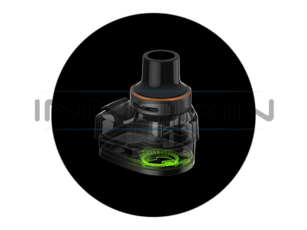 Ve vrchní části zařízení najdete novou cartridge Vaporesso Armour G Series s obrovským objemem. Hravě do ní doplníte až 5ml e-liquidu. S tímto slušným zásobníkem se můžete těšit na dlouhé hodiny intenzivního odpařování s minimem doplňování. A právě samotné plnění je vymyšleno u cartridge velmi intuitivně. Nachází se v horní části a tvoří ho pouze praktická silikonová záslepka. Do plné kapacity tak zvládnete cartridge naplnit čistě a rychle, doslova za pár vteřin.