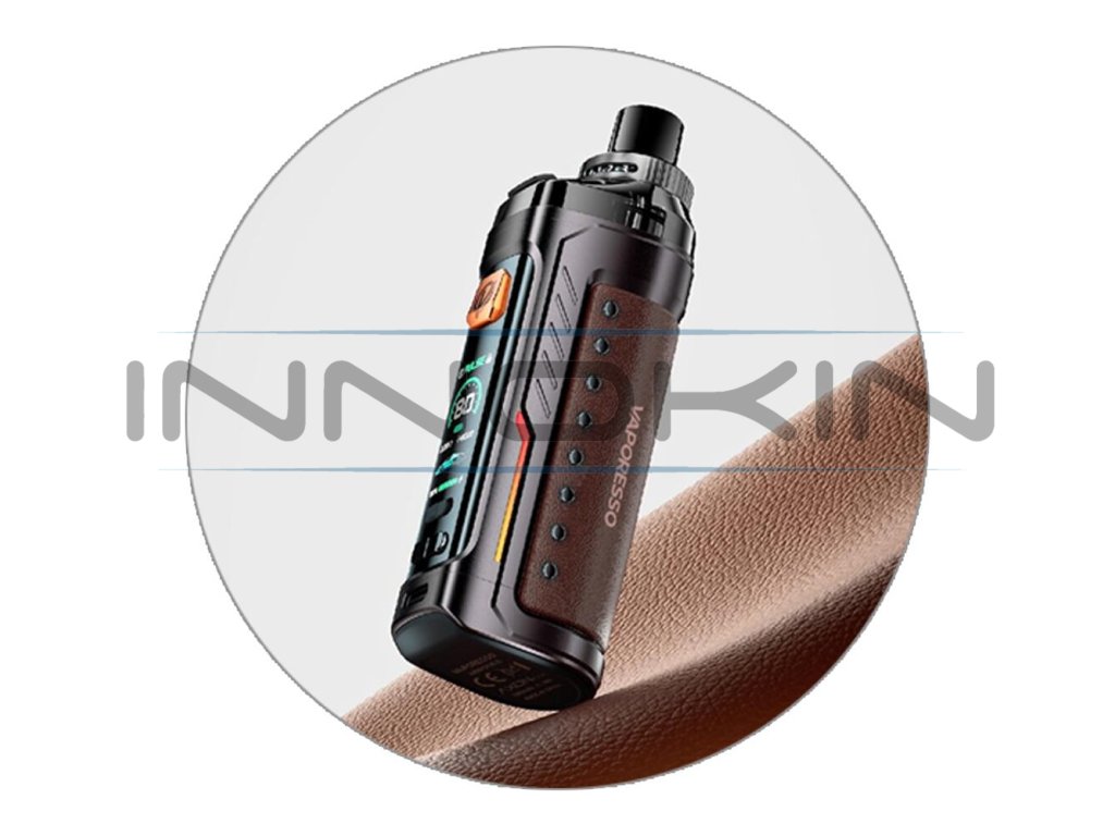 Luxusně zpracovaný pod mod Armour G se pyšní bytelnou kovovou konstrukcí a krásně zpracovanými koženými panely. Nabídne také perfektní ergonomii pro pohodlné držení v dlani během používání. Zadní zaoblená část krásně kopíruje vaši dlaň a vapování vás tak bude doslova bavit. Oproti jiným pod modům s podobnými vlastnostmi navíc nabídne až o 30% menší konstrukci, celkové rozměry se zastavily na krásných 113 x 38 x 28 mm.