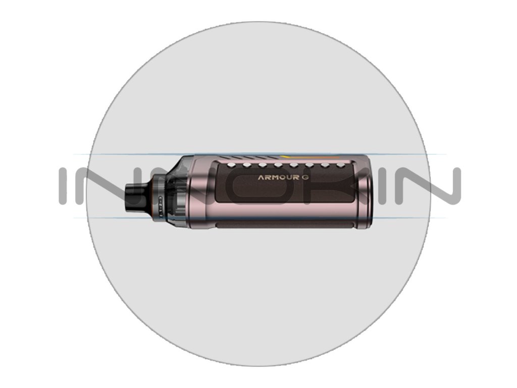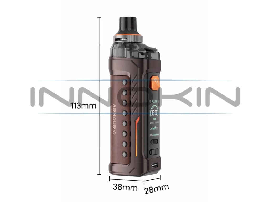 Luxusně zpracovaný pod mod Armour G se pyšní bytelnou kovovou konstrukcí a krásně zpracovanými koženými panely. Nabídne také perfektní ergonomii pro pohodlné držení v dlani během používání. Zadní zaoblená část krásně kopíruje vaši dlaň a vapování vás tak bude doslova bavit. Oproti jiným pod modům s podobnými vlastnostmi navíc nabídne až o 30% menší konstrukci, celkové rozměry se zastavily na krásných 113 x 38 x 28 mm.