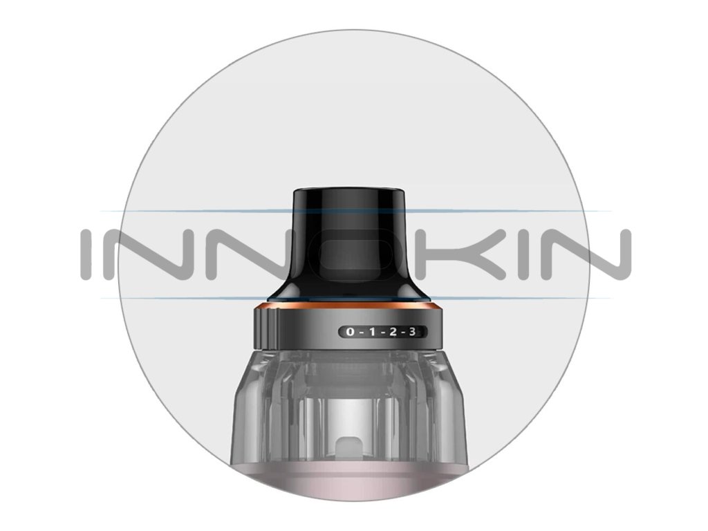 Pro co nejpřesnější vyladění tuhosti potahu je cartridge opatřena horním systémem regulace airflow se čtyřmi úrovněmi. Pomocí číslovek na vzduchovém slotu si tak snadno změříte, na kolik budete chtít nechat vzduchový otvor pootevřený a upravíte si potah přesně podle svých představ. Nastavení je rychlé, snadné, plynulé a příjemně detailní.