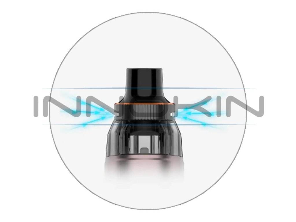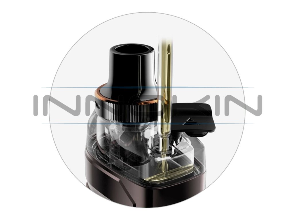 Ve vrchní části zařízení najdete novou cartridge Vaporesso Armour G Series s obrovským objemem. Hravě do ní doplníte až 5ml e-liquidu. S tímto slušným zásobníkem se můžete těšit na dlouhé hodiny intenzivního odpařování s minimem doplňování. A právě samotné plnění je vymyšleno u cartridge velmi intuitivně. Nachází se v horní části a tvoří ho pouze praktická silikonová záslepka. Do plné kapacity tak zvládnete cartridge naplnit čistě a rychle, doslova za pár vteřin.
