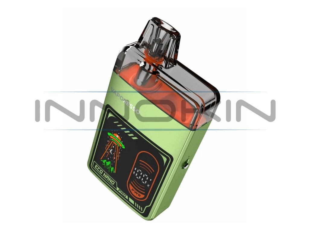 Novinkou v řadě ECO NANO je praktický displej na předním panelu, jenž vás během užívání informuje o aktuálně zvoleném výstupním režimu a stavu baterie. Mimo to přidává také hravou a stylovou animaci, která rozzáří vaše zařízení při každém potahu. Unikátní e-cigareta Vaporesso ECO NANO Pro je nejen praktická, ale také velice elegantní.