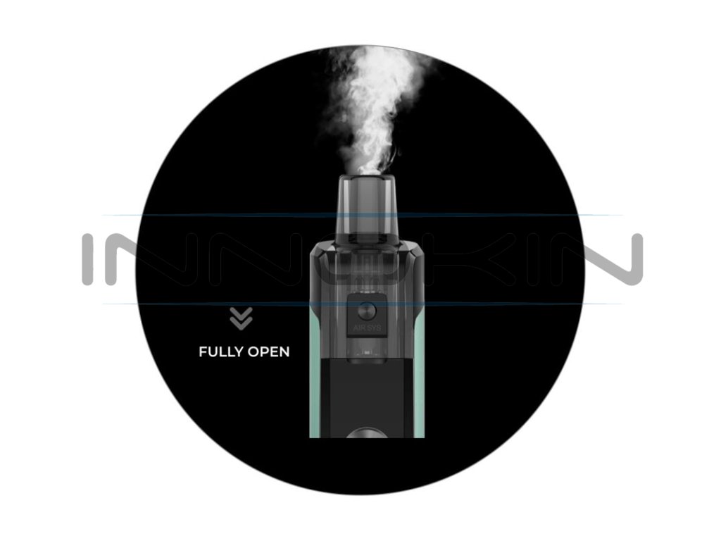 Cartridge modelu GEN Air 40 disponuje speciálním systémem regulace airflow, který je umístěn v přední části. Systém je tvořen stylovým posuvníkem, který dokáže velice efektivně korigovat proudění vzduchu a jeho posouváním si dle potřeby uvolňujete, nebo utahujete výslednou tuhost potahu. Systém je nesmírně efektivní, plynulý a praktický, bez problému si tak nastavíte potřebný vzduch od MTL až po RDL potah.
