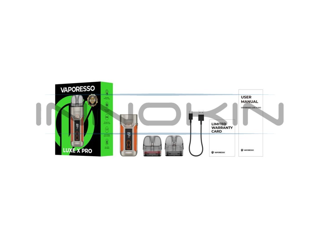 Klíčovým prvkem je přítomnost předního ovládacího panelu s přehledným OLED displejem. Díky ovládacímu panelu si budete moci pohodlně regulovat výstupní výkon až do hodnoty 40 W. Celkové nastavení a ovládání je velmi intuitivní a snadné. Na předním panelu se nachází také velké spínací tlačítko, které lze použít pro spuštění žhavení, nebo pro uzamčení e-cigarety. Novinkou u verze LUXE X PRO je možnost použití také automatického spínání potahu pouhým potažením z náustku. V základním balení najdete také dvě cartridge LUXE X s integrovanou žhavící hlavou a velkým objemem 5 ml. První cartridge nabídne odpor 0,4 ohm a je vhodná pro DL vaping, druhá cartridge nabídne odpor 0,6 ohm a využití na RDL. Obě jsou opatřeny technologií COREX pro zvýraznění chuti. E-cigareta je potom samozřejmě také kompatibilní s dalšími cartridgemi LUXE X. Vaporesso LUXE X PRO Pod Kit je špičková e-cigareta, která posouvá hranice vapingu zase o kousek výš.