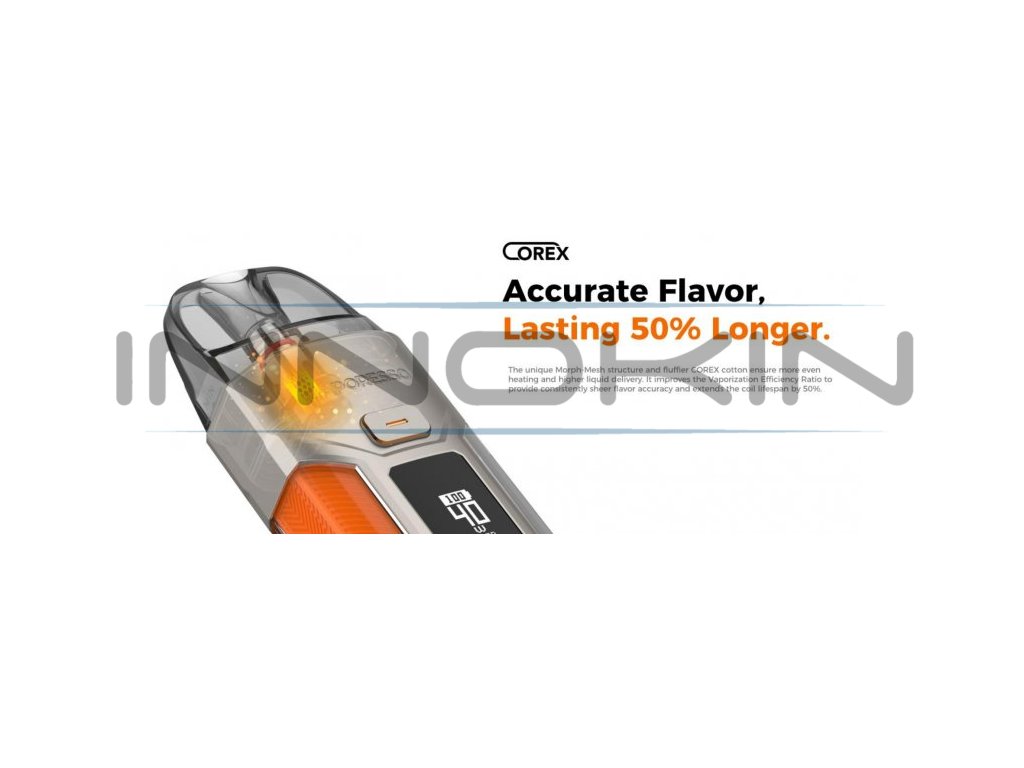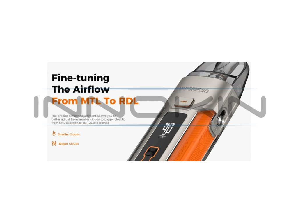 Vaporesso Luxe X Pro je elektronická cigareta s futuristickým designem a nastavitelným výkonem až 40W. Ergonomické tělo z kvalitní zinkové slitiny disponuje vestavěnou baterií o kapacitě 1500mAh s USB-C portem pro rychlé nabíjení. Na přední straně je umístěn OLED displej, který umožňuje nastavení hodnot a zobrazuje všechny potřebné informace. Tvorbu páry zajišťuje nejen spínací tlačítko, ale i systém automatického žhavení - stačí pouze potáhnout z náustku. Díky inovativní regulaci přívodu vzduchu si můžete nastavit styl vapování MTL nebo DL. Cartridge o objemu 5ml disponují vestavěnou žhavicí hlavou s technologií Morph-Mesh = čistá chuť liquidu.