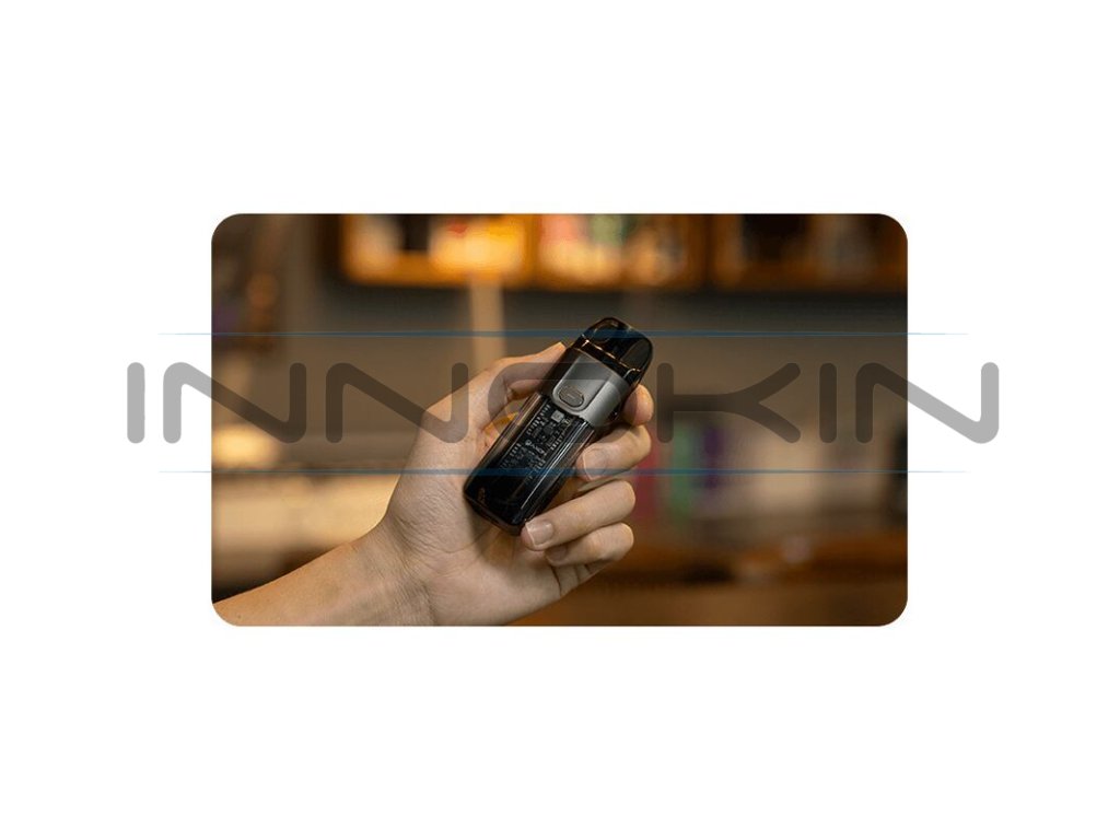 Vaporesso LUXE X Pod Kit je netradičně zpracovaná a futuristická e-cigareta. Celé tělo je transparentní, přičemž její vrchní část zdobí stylový prstenec z neprůhledného kovového materiálu. Skrz transparentní konstrukci ve spodní části můžete nahlédnout do jádra samotného zařízení s čipem a dalšími prvky. Rozměry činí 98 x 21,6 x 21,5 mm, díky zaobleným hranám se příjemně drží v dlani a příjemně se také používá.