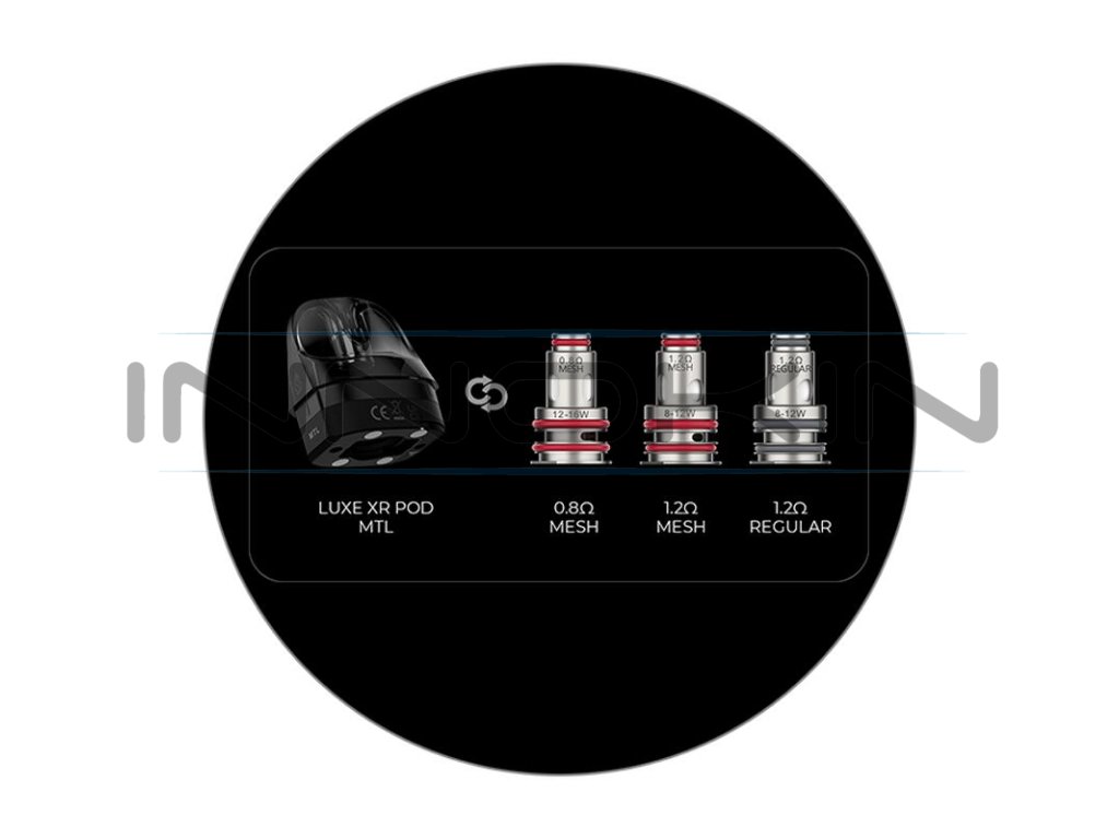 Cartridge XR Pod v základním balení je kompatibilní se žhavícími hlavami z platformy GTX. Tato platforma nabídne celou řadu různorodých odporů a typů žhavících hlav. V základním balení na vás čeká tělísko GTX Mesh s odporem 0,2 ohm a GTX Mesh s odporem 0,4 ohm. Model LUXE XR MAX je zároveň zpětně kompatibilní také s cartridgemi LUXE X s integrovanými hlavami, které se dají pořídit samostatně.