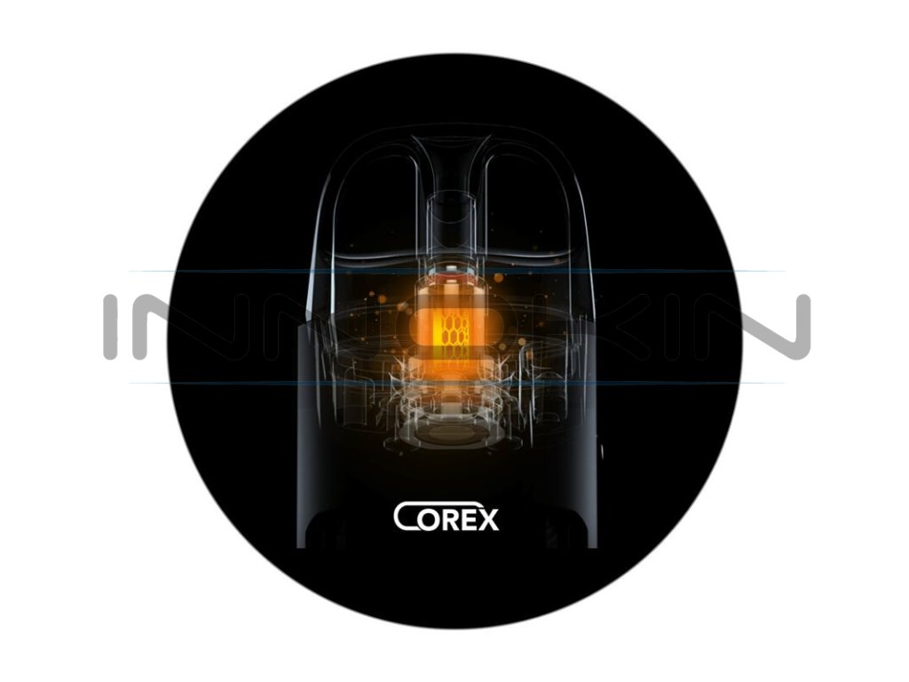 O co nejlepší chuťové podání a dlouhou životnost žhavících tělísek se postará inovativní technologie COREX, která na vás čeká v jádru zařízení. Tělíska jsou opatřena speciálně navrženým druhem pletiva a luxusní přírodní vatou pro efektivní sání e-liquidu a vyváženou chuť při každém potahu. Tělíska nabídnou také velkou odpařovací plochu pro maximální prokreslení každého e-liquidu při potahu, v zařízení LUXE XR MAX vynikne každý váš e-liquid na maximum.