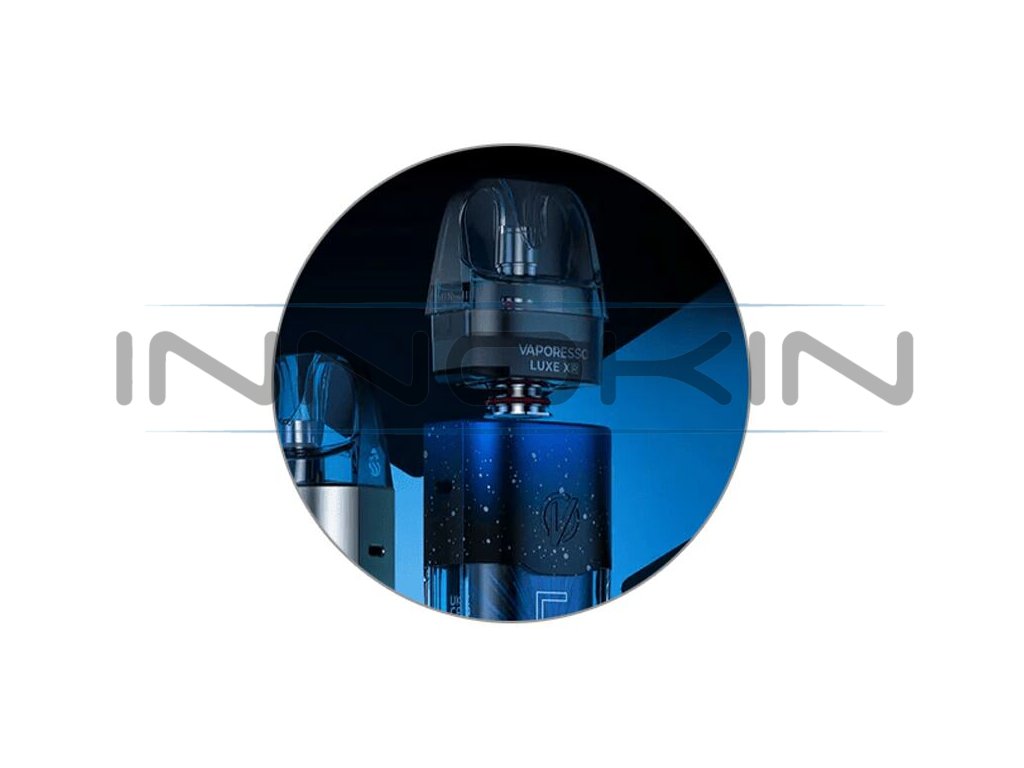 Vaporesso LUXE XR Pod Kit rozšiřuje možnosti využití proti standardní verzi elektronické cigarety LUXE X a přináší novinku v podobě speciálních cartridgí na vyměnitelné žhavící hlavy. Celé zařízení si potom zachovává krásu a eleganci původního modelu LUXE X, přináší však ještě tři nové barevné varianty Galaxy s ještě větším důrazem na futuristické konstrukční prvky. Tělo e-cigarety nabídne stylovou transparentní konstrukci a praktické rozměry 98 x 31,6 x 21,6 mm. Díky pečlivě navržené konstrukci se příjemně drží v dlani a působí nesmírně elegantním dojmem. V těle e-cigarety LUXE XR se potom ukrývá integrovaná baterie s velkou kapacitou 1500 mAh pro intenzivnější používání. Baterii si budete moci dobíjet prostřednictvím portu USB-C proudem až 1.5A.