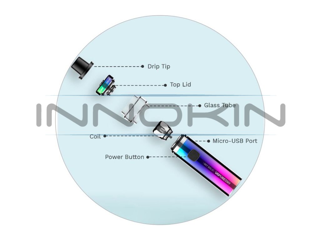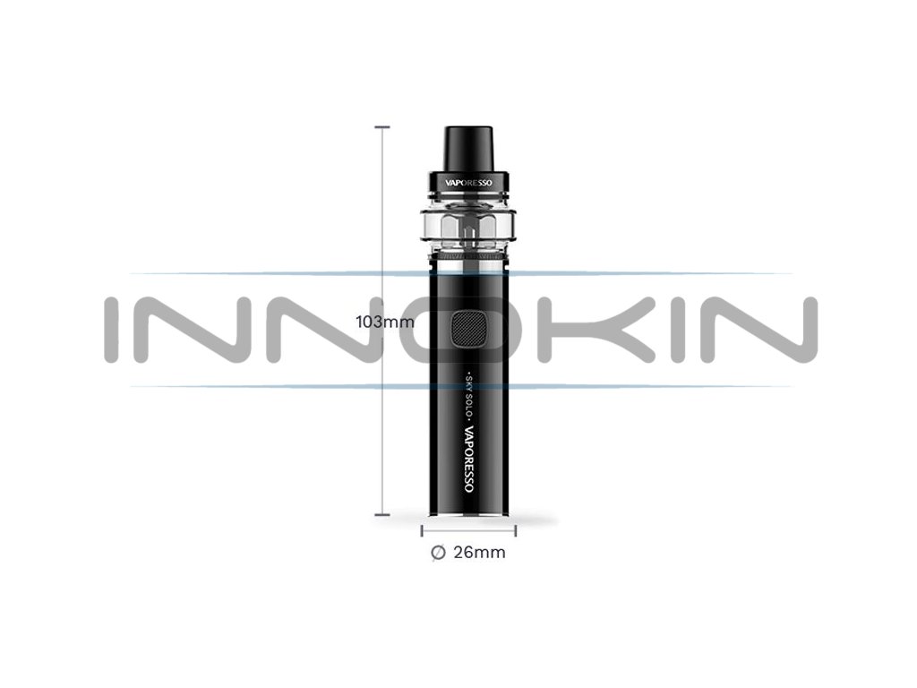 Vaporesso Sky Solo Kit je nový a praktický model elektronické cigarety s tradičním trubkovým designem. E-cigareta je určena k přímému potahování do plic a cílí zejména na začátečníky, nabízí jednoduchou obsluhu a snadné ovládání, výborné podání chuti a solidní objem clearomizéru. Její délka činí 103 mm a průměr je potom 26 mm. Díky tradiční trubkové konstrukci se z ní příjemně vapuje a můžete ji také pohodlně přenášet v kapse, nebo v cestovním zavazadle. Na výběr je hned několik barevných provedení. Vybere si opravu každý. V těle se nachází integrovaná baterie s kapacitou 1400 mAh, jež si bez problému poradí s několikahodinovým intenzivním provozem. V případě vybití navíc jednoduše připojíte microUSB kabel a baterii dobijete pomocí počítače, nebo adaptéru do sítě.