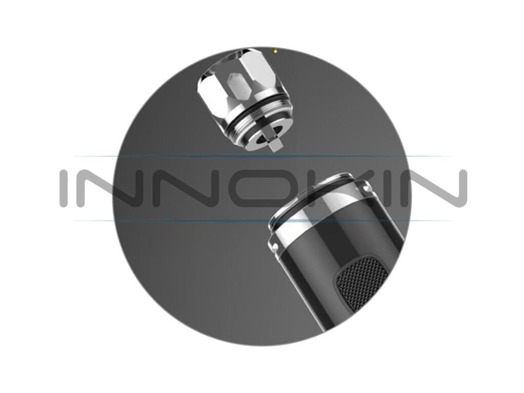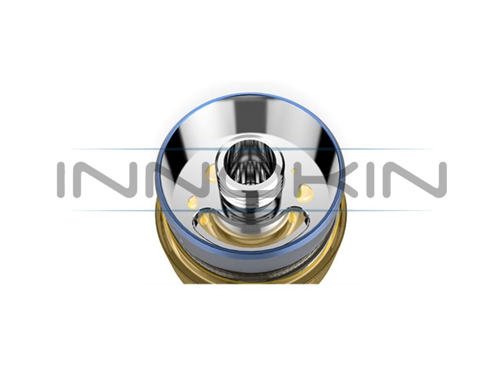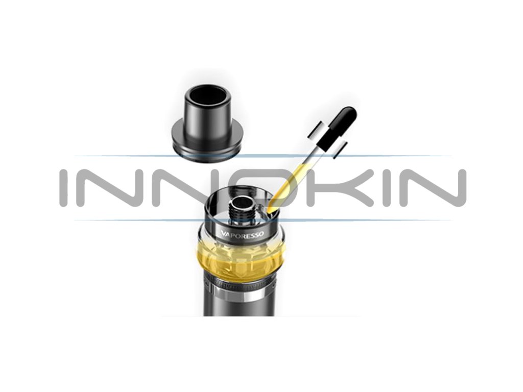 Tank nabídne velký objem 3,5 ml, který si bez problému poradí s několikahodinovým intenzivním používáním bez nutnosti plnění. Pokud však na plnění přeci jen dojde, potěší vás přítomnost praktického vrchního systému doplňování. Jednoduchým pohybem odšroubujte vrchní uzávěr a doplňujte e-liquid podle potřeby. Ve vrchní části je potom umístěn speciální bazének, který zabrání možnému úniku po stěnách atomizéru při případném přeplnění tanku, lze ho tedy efektivněji udržovat v čistotě.