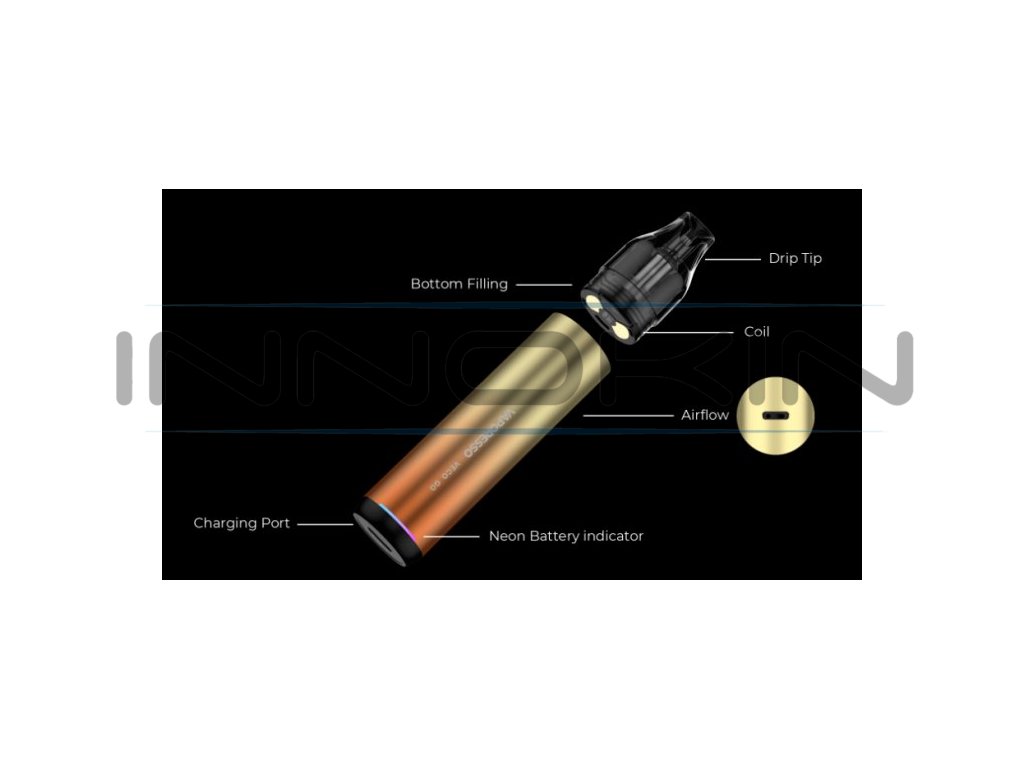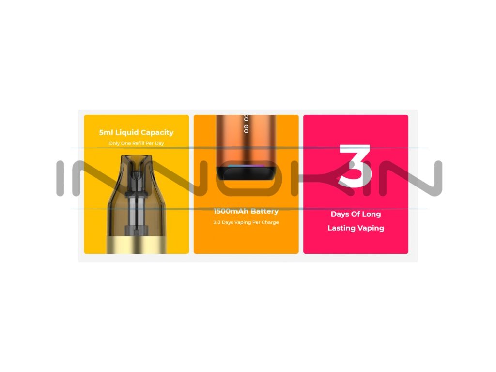 Elektronická cigareta Vaporesso VECO GO je perfektní vapovací zařízení ve stylu pera pro začátečníky, kteří hledají jednoduchost bez kompromisů v kvalitě vapingu. Elegantní a stylový designe baterie disponuje vestavěným monočlánkem o kapacitě 1500mAh s rychlonabíjením typu USB-C 5V/2A a automatickým výkonem až 25W. Vyměnitelná cartridge (POD) je vybavena žhavící hlavou o odporu 0,6ohm a 0,8ohm s objemem nádržky 5ml. Díky magnetickému propojení s baterií lze cartridge jednoduše vyjmout a doplnit oblíbeným liquidem. VECO GO využívá technologii zahřívení spirálky COREX, která zajišťuje přesné podání chuti a delší životnost. Magnetická podložka umožňuje regulaci proudění vzduchu pro optimální nastavení.