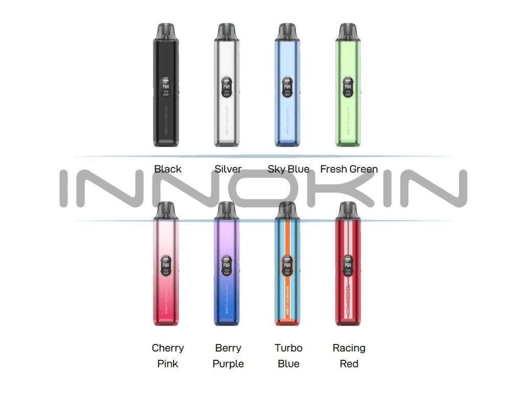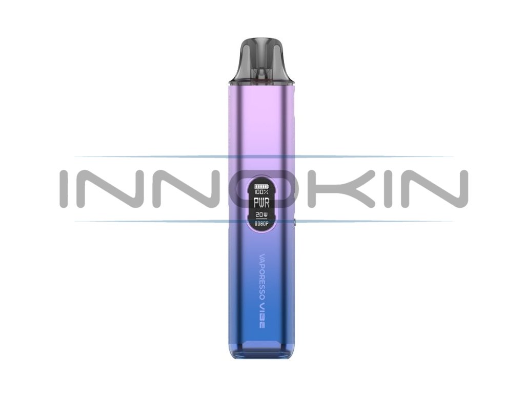 Vaporesso Vibe Pod Kit. Novinka zaujme nejen moderním vzhledem, ale především inovativní technologií Dual Mesh Coil, která přináší plnější chuť liquidu a delší životnost cartridge. Tělo baterie je vyrobeno z lehkého a odolného materiálu, který v sobě ukrývá monočlánek o kapacitě 1100mAh s rychlým USB-C nabíjením (5V/2A) a výkonným čipem AXON. Ten umožňuje přepínání mezi režimy ECO (úsporný výkon) a PWR (plný výkon), přičemž zařízení zároveň umožňuje regulaci airflow a přizpůsobení potahu od utaženého po volný. Na přední straně je barevný 0,54" TFT displej, který informuje o stavu baterie i aktuálním režimu. Vyměnitelná cartridge o objemu 4,5ml je navržena pro maximální výdrž.