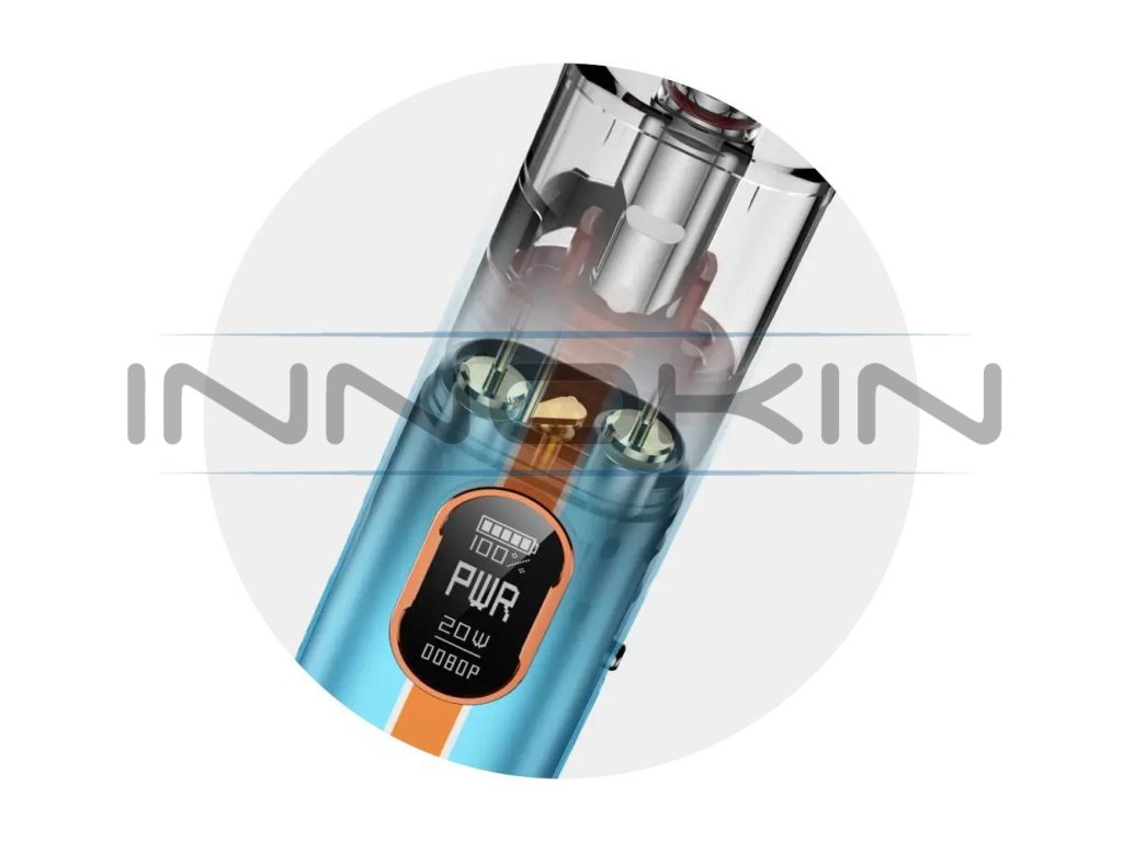 V kompaktním a elegantním těle se nachází integrovaná baterie s kapacitou 1100 mAh. Tato robustní baterie zajistí nejen hladký a bezproblémový chod e-cigarety, ale také poskytne dostatečně dlouhou výdrž až po celý den (v režimu ECO) bez neustálého přerušování kvůli hledání nabíječky. K dobíjení pak slouží standardní USB-C port, který se nachází přímo na těle zařízení.