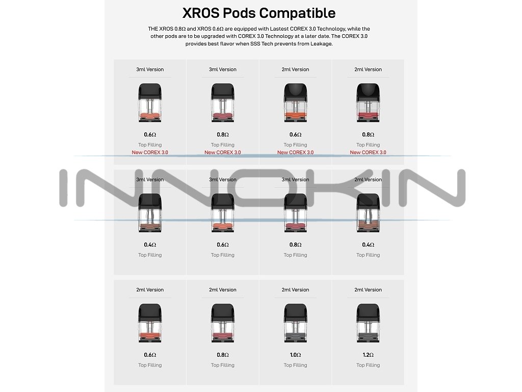 XROS Cartridge 2mlV základním balení naleznete dvě nové cartridge XROS Series s objemem 2ml a technologií COREX 3.0. První cartridge s odporem 0.6Ω je určena pro volnější MTL a RDL styl vapování, druhá s odporem 0.8Ω je ideální pro klasické MTL šlukování. Zařízení je zpětně kompatibilní se všemi cartridgemi platformy XROS pro maximální flexibilitu. |