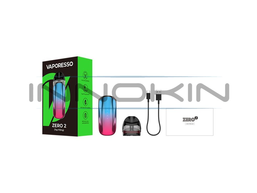 Vaporesso Zero 2 Pod Kit je elegantní a stylový pod systém se zaměřením na milovníky MTL. Jedná se o novou verzi populárního modelu Vaporesso Renova Zero. Přináší však ještě ergonomičtější design, větší kapacitu baterie a větší objem cartridge. Povrch je vyroben z deseti vrstev pomocí technologie IML, což dodá celému zařízení zcela unikátní vzhled. Povrch je uhlazený do nejmenších detailů, díky čemuž se pohodlně drží v ruce a snadno se používá. Rozměry e-cigarety činí jen 88,3 x 31,5 x 19 mm, skvěle proto padne do ruky a pohodlně ji umístíte také do kapsy. V tomto malém těle potom najdete integrovanou baterii s velkou kapacitou 800 mAh. O stavu baterie jste neustále informováni díky přítomnosti panelu s LED diodami v přední části. Dle aktuálního počtu rozsvícených diod poznáte, zda je potřeba baterii dobít, nebo zda můžete stále vapovat.