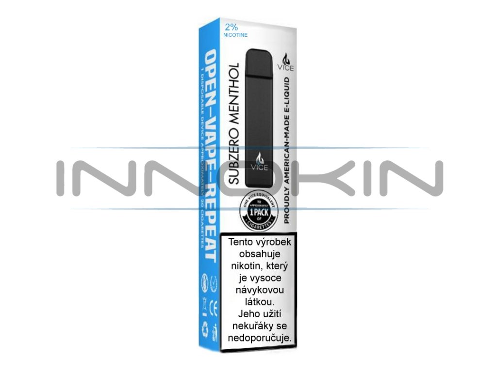 Chladivý mentol... VICE je jednorázová elektronická cigareta vyrobená v USA. Baterie o kapacitě 230mAh a vestavěná cartridge o objemu 1ml Vám poskytne až 300 potažení. Je vhodná především pro ty, kteří si chtějí elektronickou cigaretu vyzkoušet bez velkých investic. Je ideální řešení pro kuřáky, kteří potřebují jednorázově překlenout pobyt v nekuřáckém prostředí – v kanceláři, autobusu, letadle, kině, restauraci apod. Jelikož se jedná o jednorázový výrobek, nevztahují se na něj reklamační podmínky.