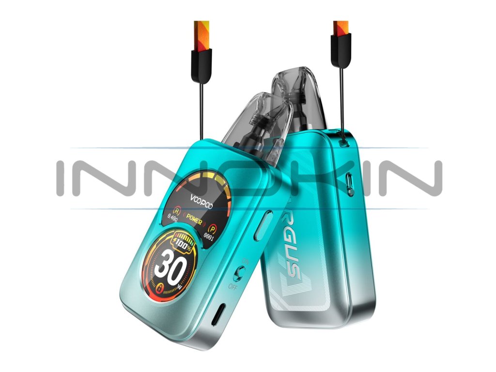 VooPoo Argus A je vůbec prvním pod systémem s duálním displejem. Ten je rozvržen do dvou samostatných zón pro ještě více informací během používání a pro zobrazení stylových animací během vapování, které zesilují požitek z vapování a přináší nezaměnitelný zážitek. Zařízení se rovněž pyšní různými vychytávkami, jako je manuální vypínač, funkce vypnutí displeje a nebo informační panel pro snadné ověření, jak moc vapujete. Vlajková loď rodiny pod systémů VooPoo Argus rovněž přináší kompatibilitu s cartridgemi Argus Pod, nyní ještě vylepšených o top fill systém plnění, delší životnost a výraznější, dlouhotrvající chuť.