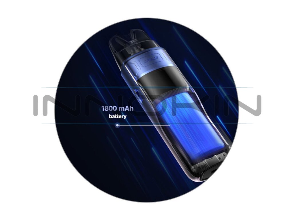 V jádru e-cigarety na vás čeká integrovaná baterie s ohromující kapacitou 1800 mAh, díky které si budete moci užívat intenzivní mnohahodinový vaping bez potřeby dalšího dobíjení. K velké kapacitě baterie nesmí chybět také výkonný dobíjecí port, ten se nachází ve spodní části a nabídne podporu nabíjení s parametry 5V a 2A.