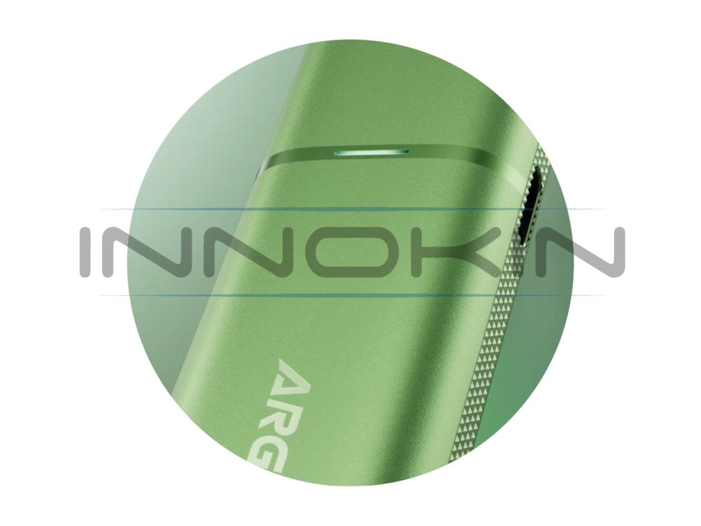 Elegantní design modelu podtrhuje lesklý pásek, ve kterém se nenápadně ukrývá indikační LED dioda. Ta svítí během vapování nebo při procesu nabíjení. Jakmile se však rozsvítí červenou barvou, dává tím jasně najevo, že kapacita baterie významně poklesla. Budete mít tak vždy přehled o tom, zdali jste ještě v pohodě a kdy už je potřeba vyhledat nabíječku. Baterii poté snadno nabijete přes standardní USB-C port.