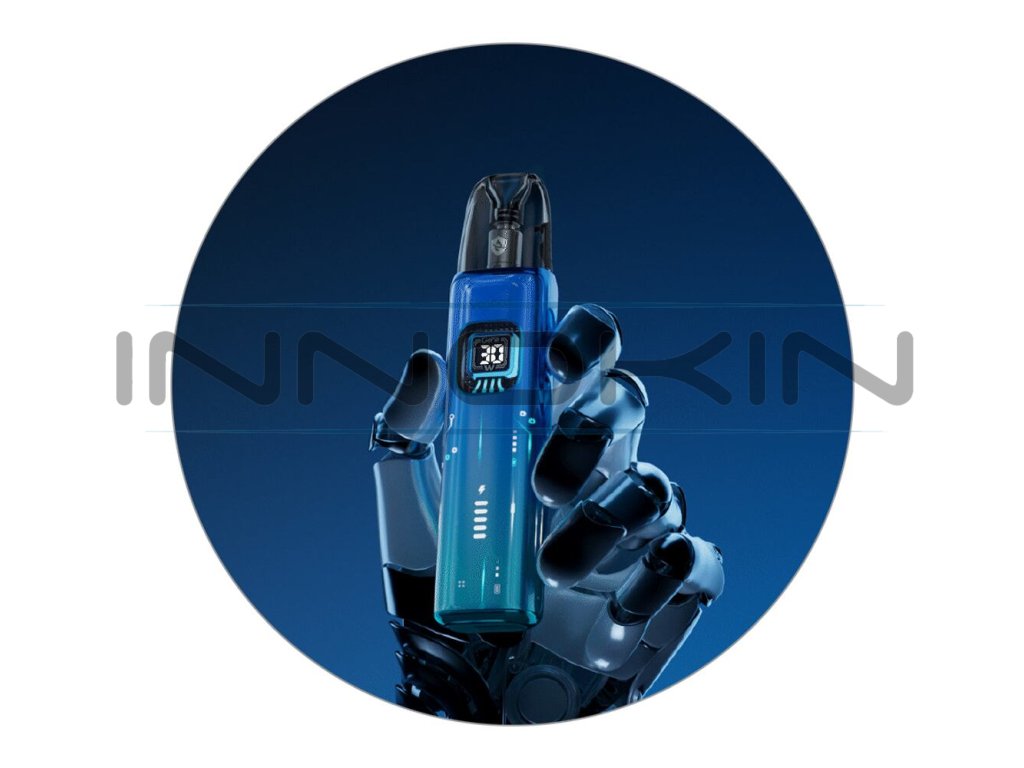 Přední část e-cigarety zdobí krásný IML full screen panel s futuristickým podsvícením. Podsvícení je inspirováno provedením tradičních tištěných spojů a dodává celé e-cigaretě naprosto unikátní a originální vzezření. Panel také mění své vizualizace při různých úkonech, jako je zapnutí a vypnutí, probuzení displeje a vložení cartridge. Pokud vám u modelu nebude toto podsvícení vyhovovat, nebo vám bude připadat příliš výrazné a extravagantní, můžete si ho jednoduše vypnout dvěma stisky tlačítka.