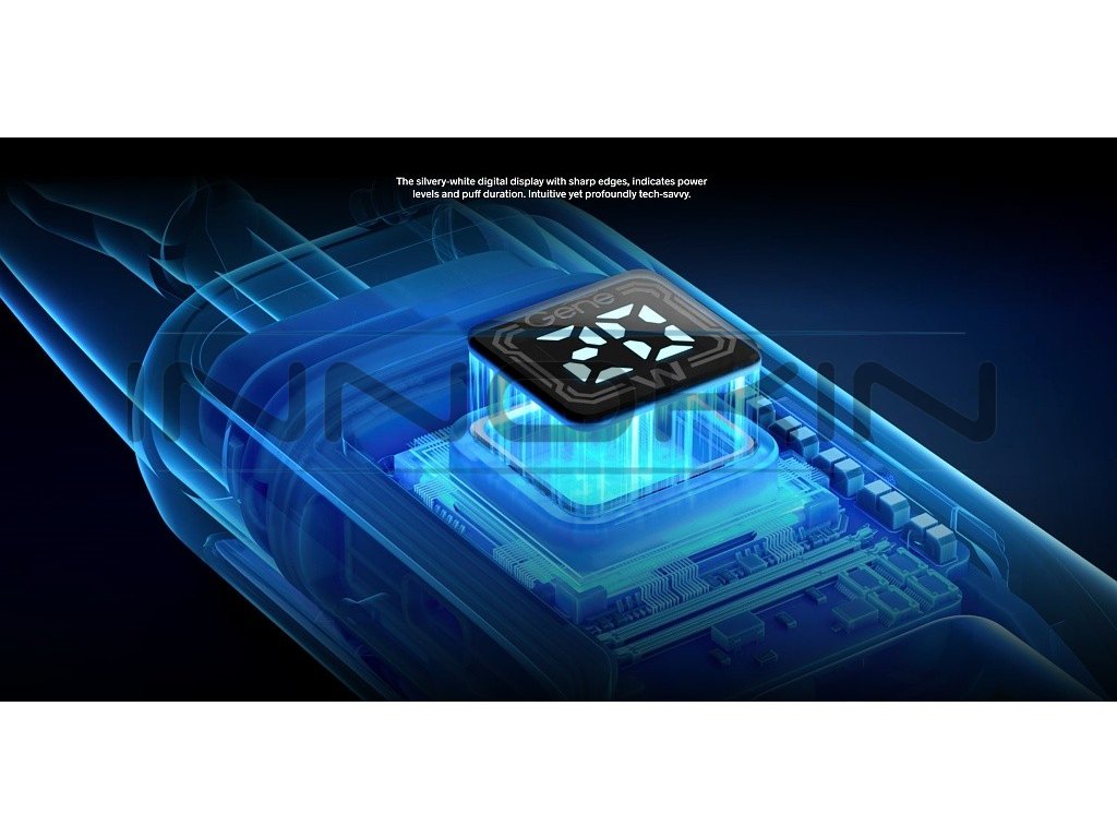 Curved Full ScreenRevoluční zakřivený displej se bezešvě obtéká kolem přední a boční části zařízení. IML film design poskytuje futuristický kovový lesklý povrch s metalickým duhově prašným efektem. Displej zobrazuje všechny důležité informace včetně výkonu, stavu baterie a režimů vapování. |