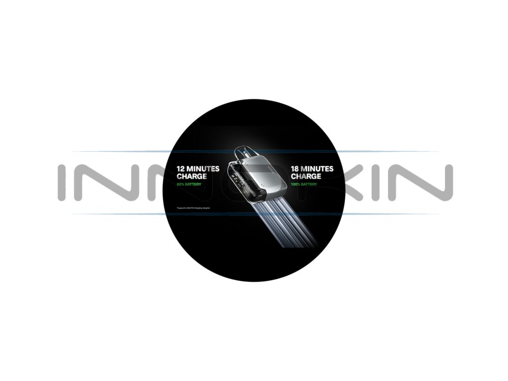 Extrémně rychlé dobíjení Jedním z klíčových prvků e-cigarety Argus P1 je přítomnost podpory extrémně rychlého nabíjení. Do plné kapacity se zvládne dobít už za 18 minut při zvolení odpovídajícího adaptéru. Tělo je kompatibilní s USB adaptéry se standardem PD 15W, po připojení takového adaptéru tak odpadá starost o jakékoliv nabíjení, jelikož budete moci mít e-cigaretu téměř neustále nabitou. * Funkce extrémně rychlého nabíjení pracuje pouze s adaptéry standardu PD 15W, při dobíjení pomocí standardního síťového adaptéru se baterie dobíjí běžnou rychlostí danou parametry vašeho adaptéru. |