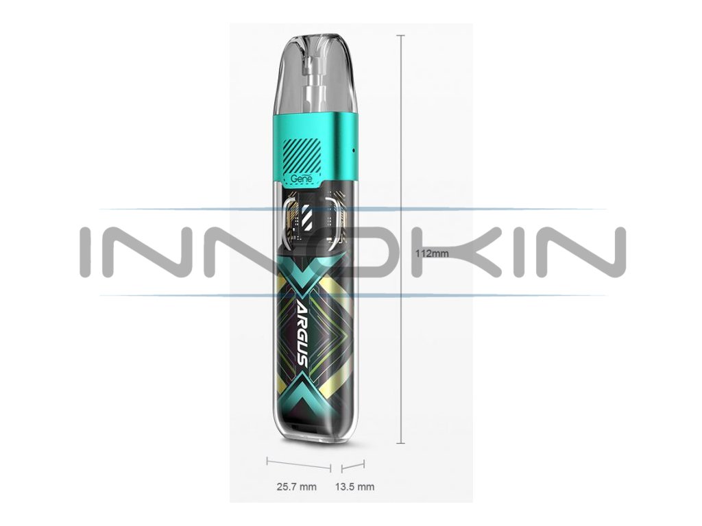 Elektronická cigareta VOOPOO ARGUS P1s Vás zaujme svým futuristickým designem, rychlým USB-C nabíjením (100% za pouhých 20 minut) a stylovým LED indikátorem stavu nabití. Vestavěný monočlánek o kapacitě 800mAh společně se speciální technologií ITO pro MTL vaping poskytuje stabilní chuť s nastavením výkonu 5W-25W a prodlužuje tím tak životnost spirálky. Vyměnitelnou cartridge (ARGUS POD) o objemu 2ml pohodlně naplníte díky jednoduchému bočnímu plnění. Na výběr máte mezi cartridgemi s vestavěnou žhavicí hlavou nebo cartridgí s vyměnitelnou žhavící hlavou ITO-M. Cartridge disponuje 4-otvorovým spodním přívodem vzduchu a společně s důmyslnou regulací přívodu vzduchu na boční straně baterie zajišťují skvělou dýmivost a autentickou chuť liquidu.
