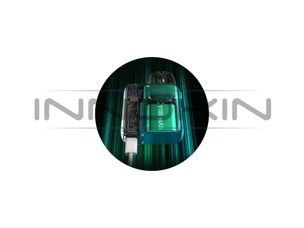 Kapesní tělo ukrývá integrovanou baterii s ohromující kapacitou 1100mAh, která se postará o nerušený požitek z vapování po celý den. Nesmí chybět ani podpora rychlého nabíjení s parametry 5V / 2A pro co nejrychlejší dobití vaší baterie kdykoliv bude potřeba.