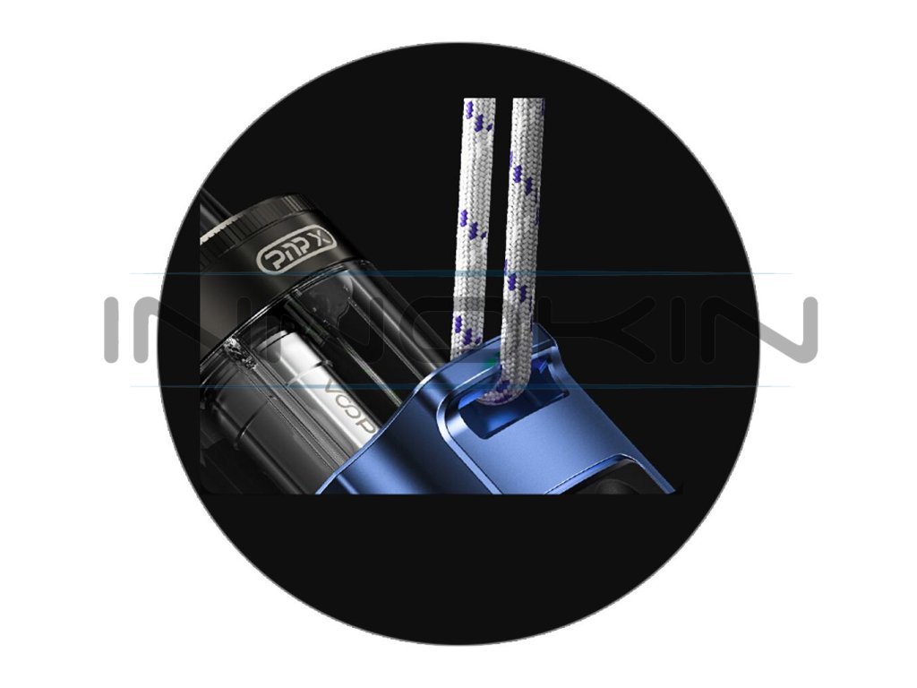 V robustním těle nesmí chybět ani integrovaná baterie s ohromující kapacitou. Ta činí krásných 3000mAh, zařízení tak hravě zvládne uvedený vysoký výstupní výkon a intenzivní vapování. Baterii si můžete kdykoliv pohodlně dobít pomocí portu USB-C, který se nachází na předním panelu. Dobíjecí port navíc disponuje speciální silikonovou krytkou, která ho chrání před usazováním prachu.