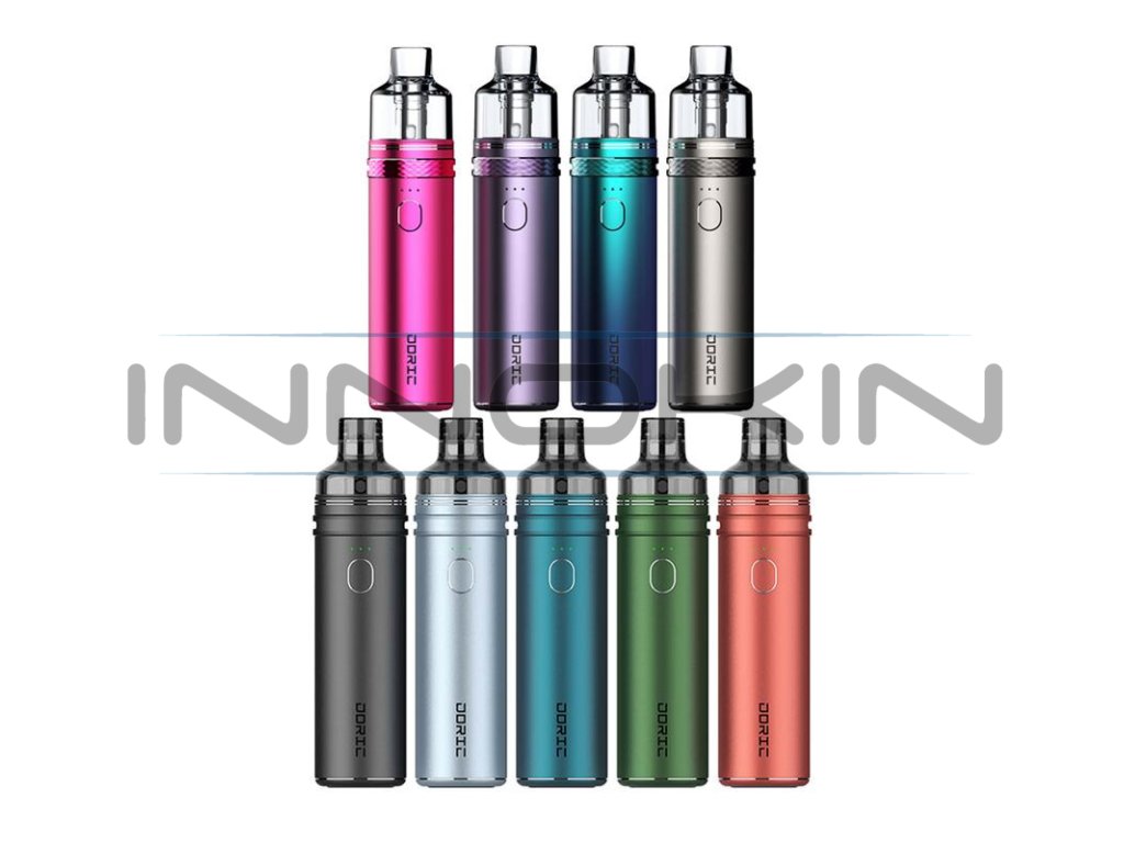Populární elektronická cigareta VooPoo Doric 60 Pod Kit pro DL vaping se představuje ve čtyřech nových barevných variantách se stylovým zdobením airflow kroužku ve vrchní části.