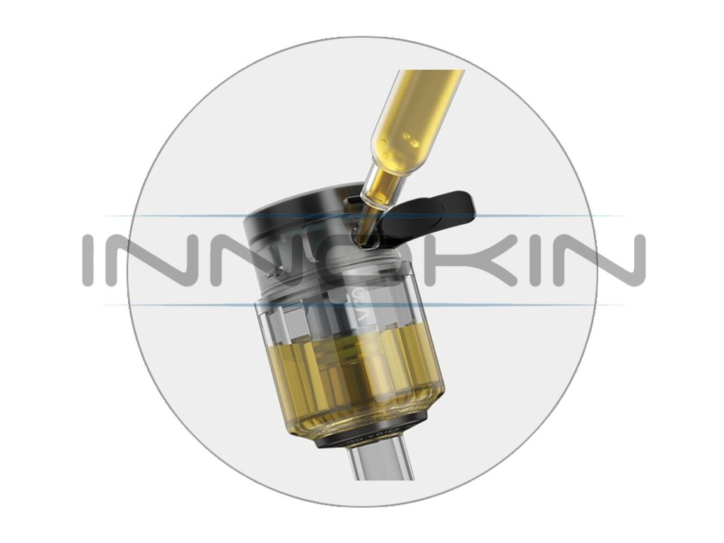 Cartridge ve vrchní části se pyšní skvělým objemem 3ml. Do cartridge tak doplníte potřebné množství e-liquidu pro dlouhé hodiny nerušeného vapování vašeho oblíbeného e-liquidu. V případě potřeby pak můžete jednoduše cartridge vysunout a během pár vteřin ji znovu doplnit díky bočnímu systému plnění se silikonovou záslepkou.