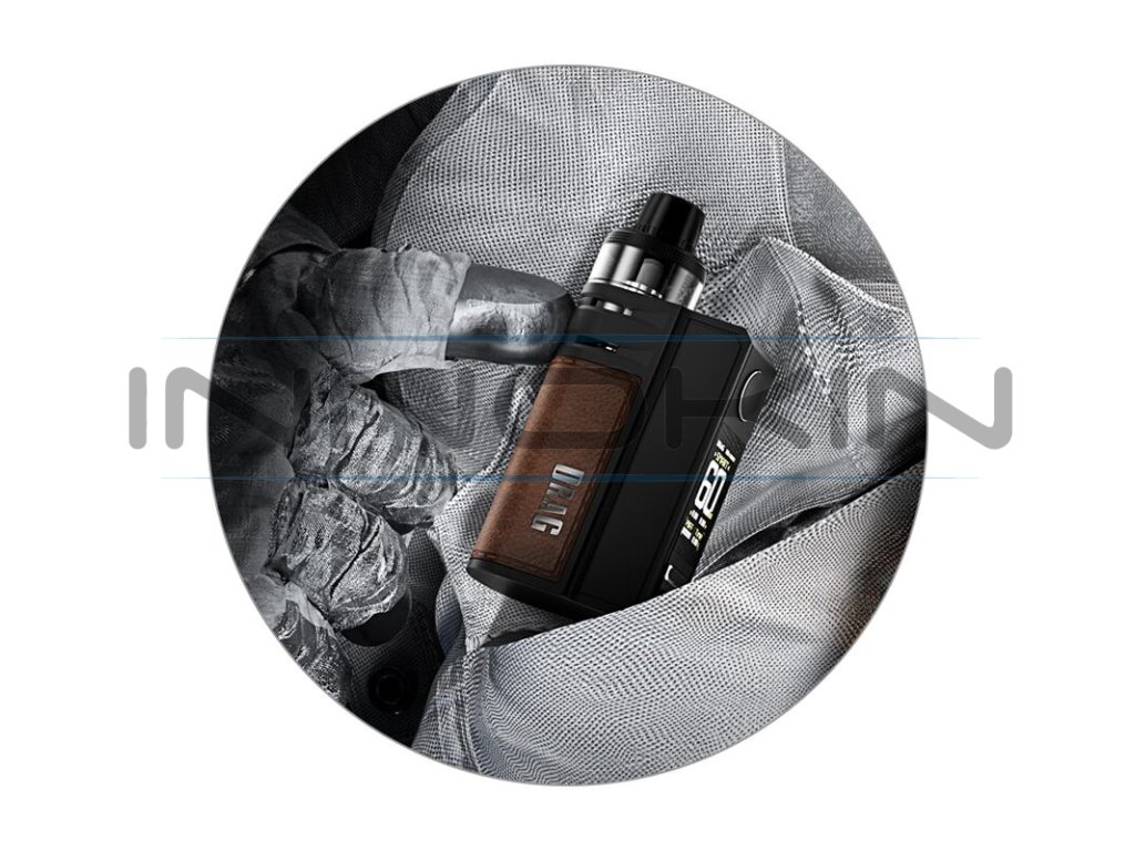 Kompaktní elektronická cigareta VooPoo Drag E60 Pod Kit je novým přírůstkem do obsáhlé rodiny zařízení Drag. Její hlavní výsadou jsou potom zejména maličké kapesní rozměry a velká kapacita baterie s podporou obrovského výstupního výkonu pro dosažení co nejvíce husté páry. V základní konfiguraci se zaměřuje hlavně na milovníky DL potahu, přičemž přináší také zbrusu nová tělíska ze série PnP pro extrémně rychlý náběh žhavení a obrovskou produkci páry. Celé tělo je vyrobeno z kombinace zinkové a hliníkové slitiny, zadní panel potom zdobí stylová ekokůže. Díky pečlivě navržené ergonomii skvěle padne do ruky a s rozměry 94 x 46 x 24,9 mm ji snadno schováte také do kapsy. Toto kompaktní tělo ukrývá v jádru integrovanou baterii s kapacitou 2550 mAh pro dlouhé hodiny nerušeného vapování. Baterii budete moci dobíjet prostřednictvím portu USB-C na předním panelu. Na ovládacím předním panelu najdete také další prvky e-cigarety, jako je spínací tlačítko, regulační tlačítka, nebo rozměrný barevný displej.
