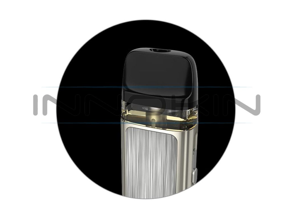 Novinkou je přítomnost jednoduchého a praktického systému plnění cartridge. Tu již nebudete muset odpojovat od těla baterie. V případě, že vám dojde uvnitř cartridge e-liquid, jednoduše sejmete vrchní náustek a během pár vteřin doplníte e-liquid zpátky do cartridge. Proces je intuitivní, jednoduchý a velice rychlý a pohodlný.