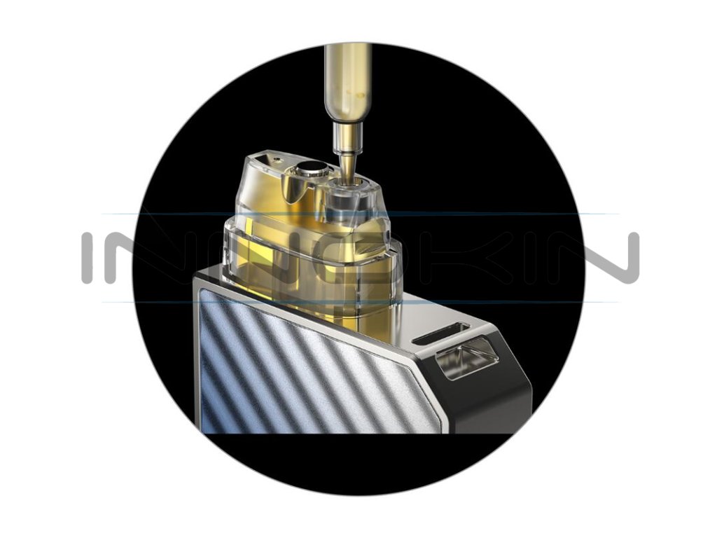 Novinkou je přítomnost jednoduchého a praktického systému plnění cartridge. Tu již nebudete muset odpojovat od těla baterie. V případě, že vám dojde uvnitř cartridge e-liquid, jednoduše sejmete vrchní náustek a během pár vteřin doplníte e-liquid zpátky do cartridge. Proces je intuitivní, jednoduchý a velice rychlý a pohodlný.