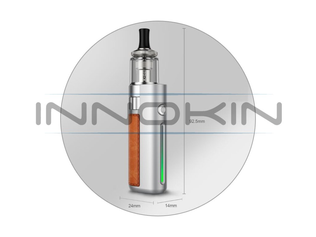 Materiál: zinková slitina + kůže + silikon (tělo e-cigarety); nerezová ocel + PCTG (cartridge)