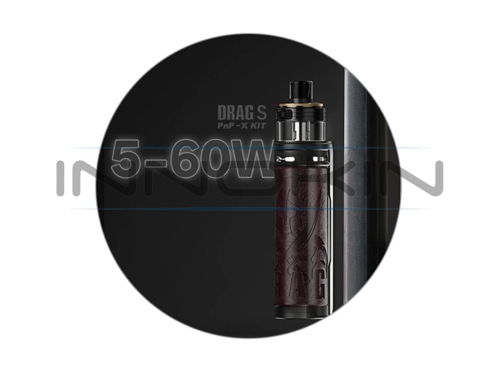 Legendární modely e-cigaret VooPoo Drag S a Drag X se vrací v nové podobě s ještě stylovějším designem a ještě ergonomičtější konstrukcí. VooPoo Drag S PnP-X Pod Kit je vylepšenou verzí původního modelu Drag S s celou řadou užitečných prvků pro každodenní využití. Nabídne krásné designové zpracování a bytelnou kovovou konstrukci, kterou doplňuje stylový kožený panel v zadní části s motivem série Drag Knight. Rozměry celé e-cigarety činí 119,5 x 33 x 28 mm. Skvěle padne do ruky a pohodlně se užívá. Uvnitř těla se nachází integrovaná baterie s kapacitou 2500 mAh, která se postará o hladký chod a zajistí také vysoký výstupní výkon. Ten lze regulovat v rozpětí 5 - 60 W přímo na předním ovládacím panelu.