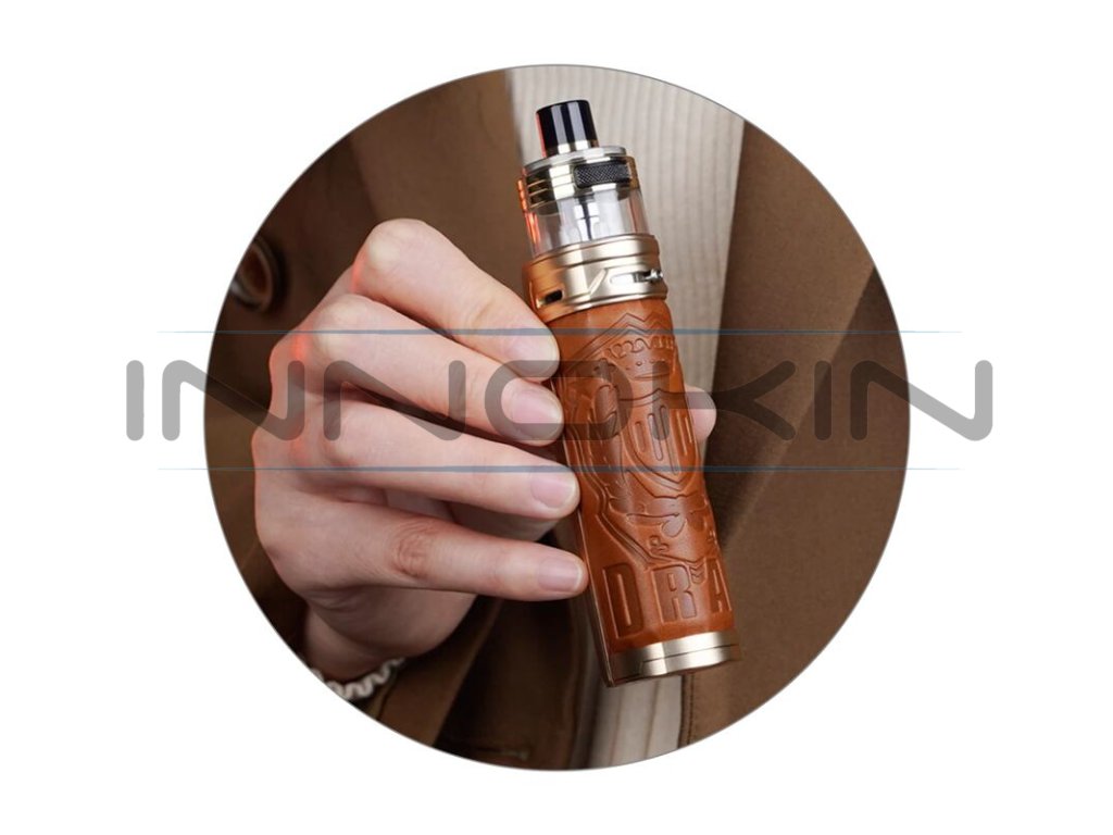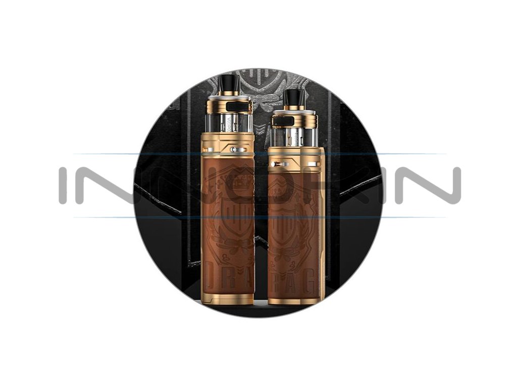 Nová verze populární e-cigarety VooPoo Drag S Pod Kit přichází s ještě ergonomičtějším zpracováním a s ještě stylovějším designem. Kovové tělo zařízení je doplněno o stylový kožený potah s motivem série v zadní části. Rozměry e-cigarety činí jen 119,5 x 33 x 28 mm. Díky zaoblené zadní části se perfektně drží v ruce a působí nesmírně robustním a bytelným dojmem, nechybí jí však také punc elegance.